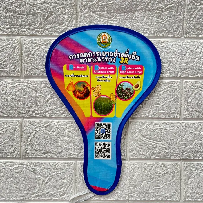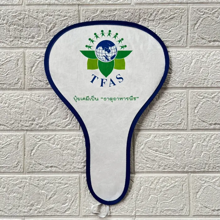 ตัวอย่างผลงาน พัดสปริงสกรีนโลโก้
